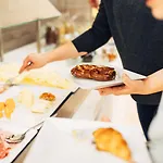 W barze dla gości przygotowano karaoke i telewizję. Podczas pobytu w hotelu goście mogą wybierać spośród pobliskich lokali gastronomicznych, takich jak restauracja Gasthaus Zu den 3 Goldenen Kugeln, w 400 metrach, czy restauracja Kyoto Running Sushi w odległości 5 min spacerem.